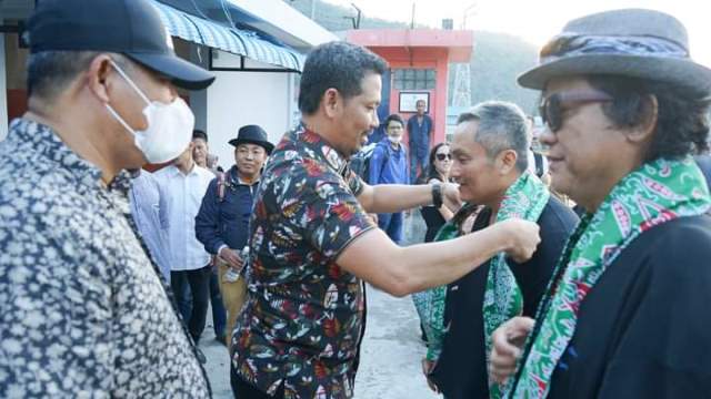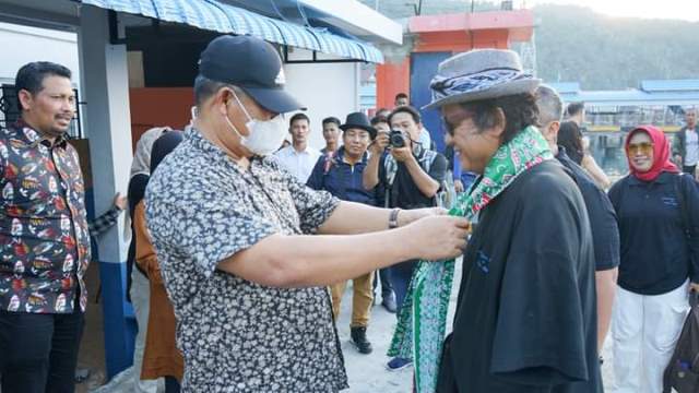 Keterangan Gambar : Bupati Anambas Abdul Haris saat menyambut Duta Baca Indonesia di Pelabuhan Sri Siantan Tarempa