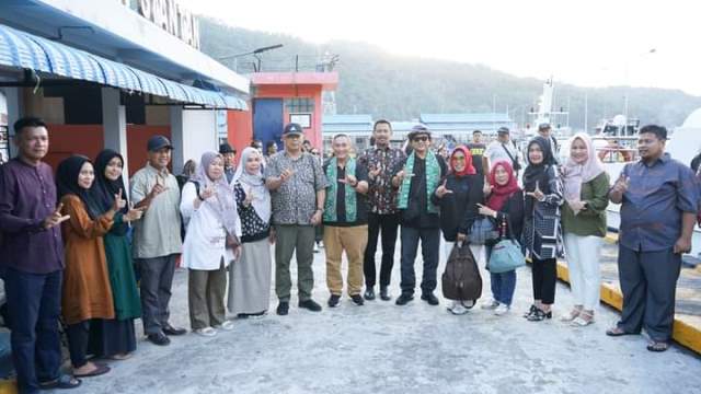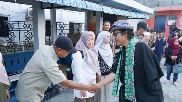 Keterangan Gambar : Sekda Anambas, Sahtiar turut menyambut rombongan Duta Baca Indonesia, Heri Indriana Haris di pelabuhan Tarempa