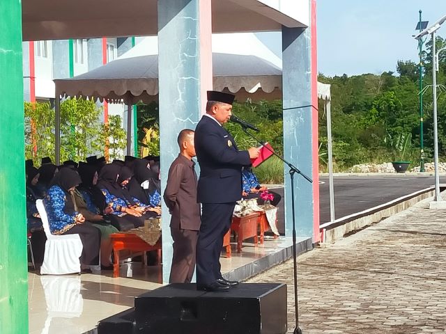 Keterangan Gambar : Wakil Bupati Kepulauan Anambas, Wan Zuhendra saat memimpin upacara.