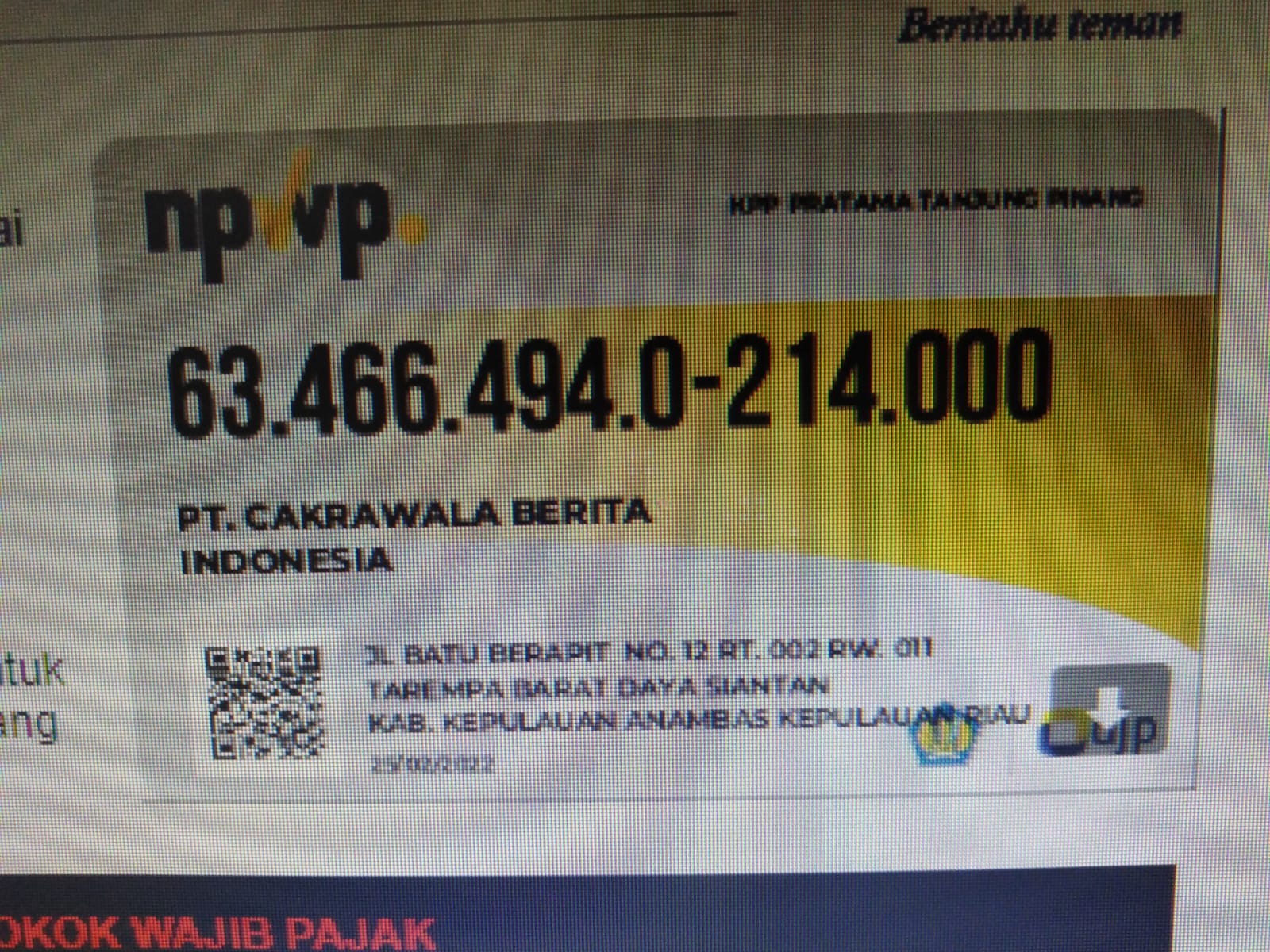 NPWP : 63.466. 494. 0- 214.000