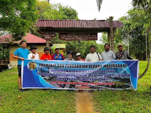 MELAYUNEWS.COM, LANGKAT - Mahasiswa Sekolah Pascasarjana (SPs) Program Magister Perencanaan Pembangunan Wilayah dan Pedesaan Universitas Sumatera Utara (USU) angkatan 2024–2025 melaksanakan kegiatan field trip sekaligus pengabdian kepada masyarakat di Kecamatan Bahorok, Kabupaten Langkat, pada 11–12 Mei 2025.